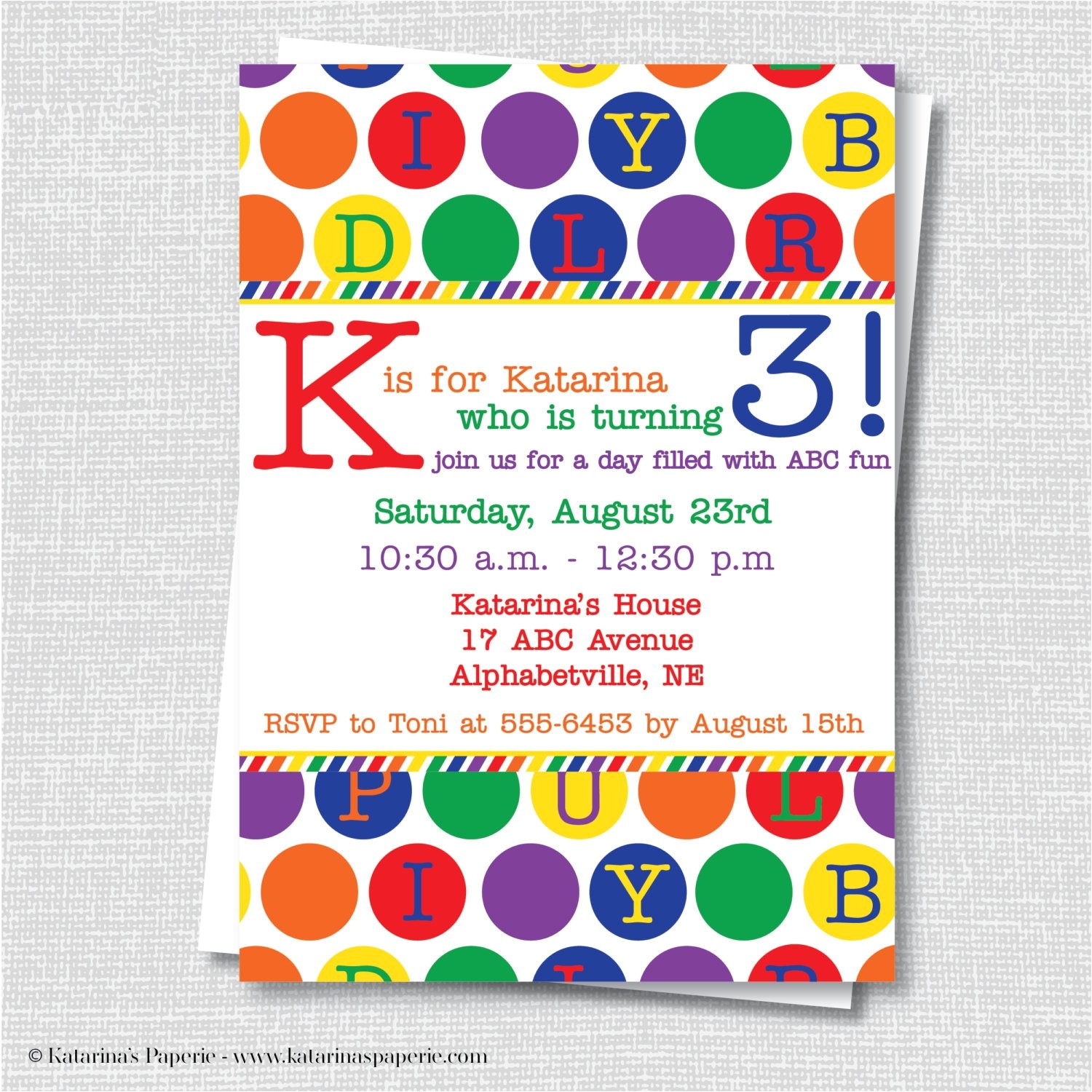 alphabet birthday invitation colorful abc library invite from abc birthday party invitations