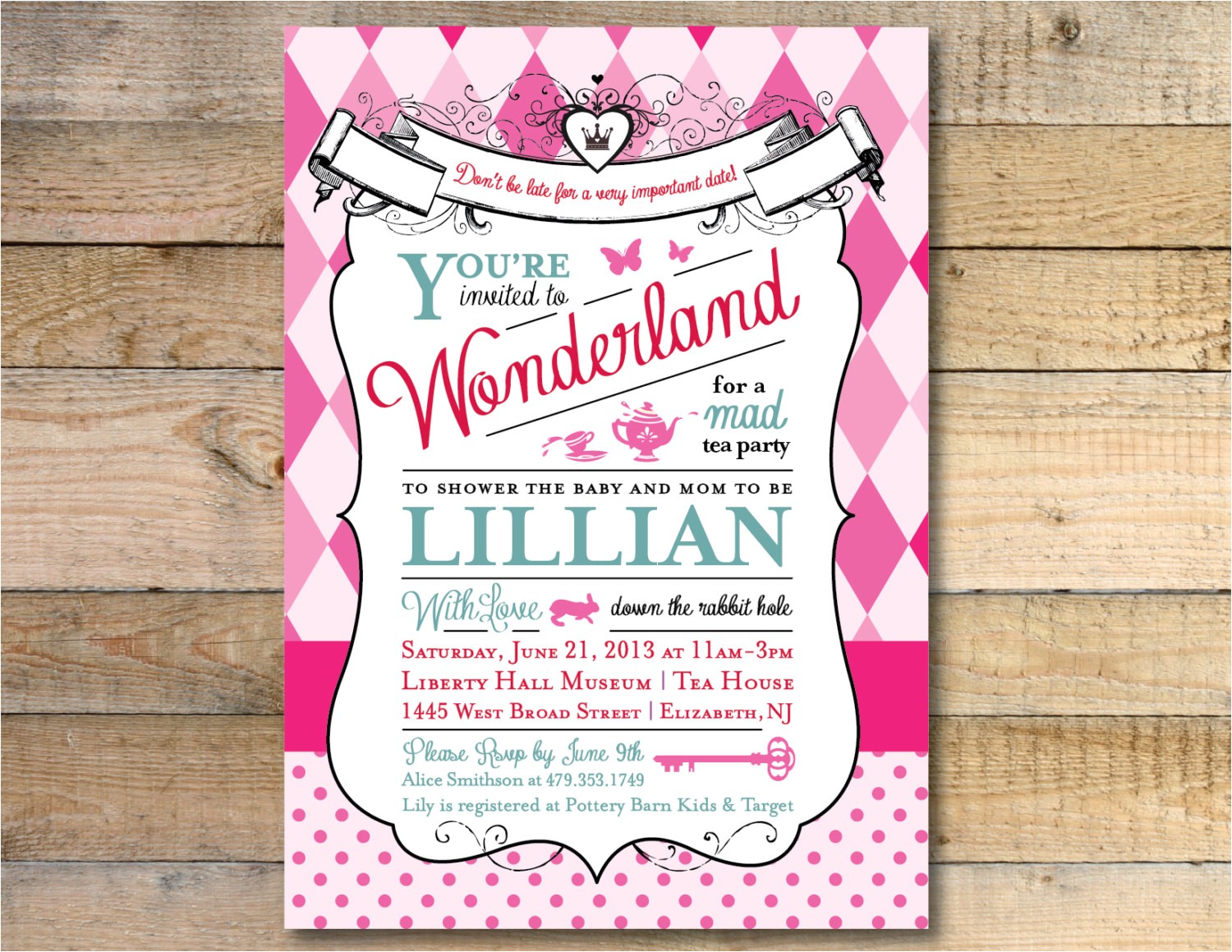 Alice in Wonderland Invitation Bridal Shower Baby Shower from alice and wonderland baby shower invitations