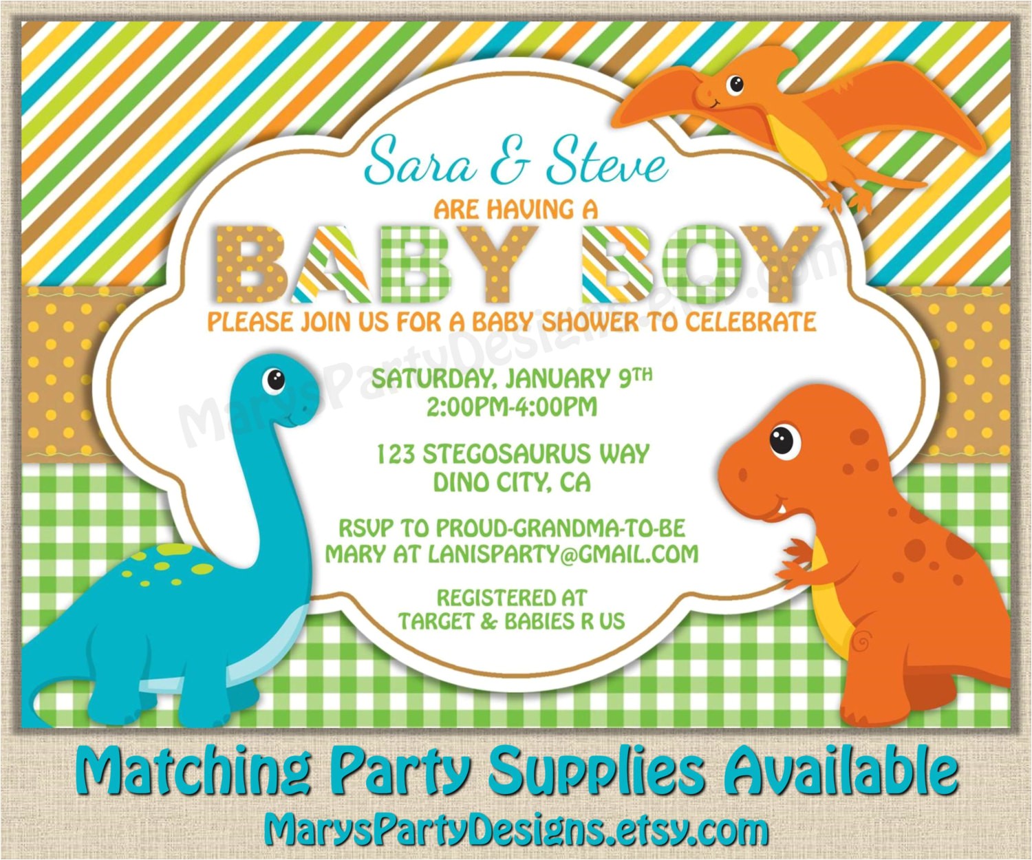 Personalized Dinosaur baby Invitations from baby shower invitations dinosaur theme