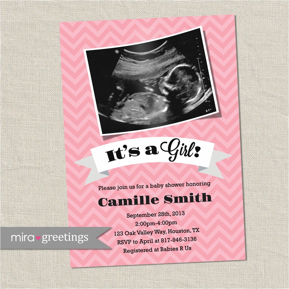 Girl Elephant Ultrasound Baby Shower invitation for from baby shower invitations with ultrasound picture