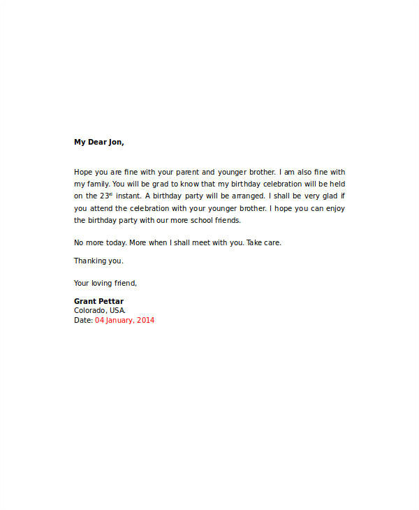 birthday invitation letter free sample letters from Birthday Invitation Letter Format In English