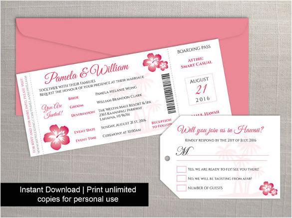 hawaiian wedding boarding pass invitation template from Boarding Pass Wedding Invitation Template
