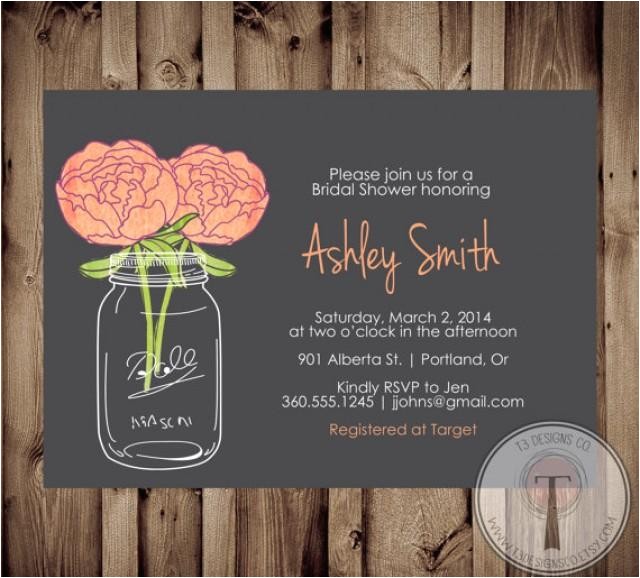 Rustic Baby Shower Mason Jar Bridal Shower Invite from chalkboard mason jar bridal shower invitations