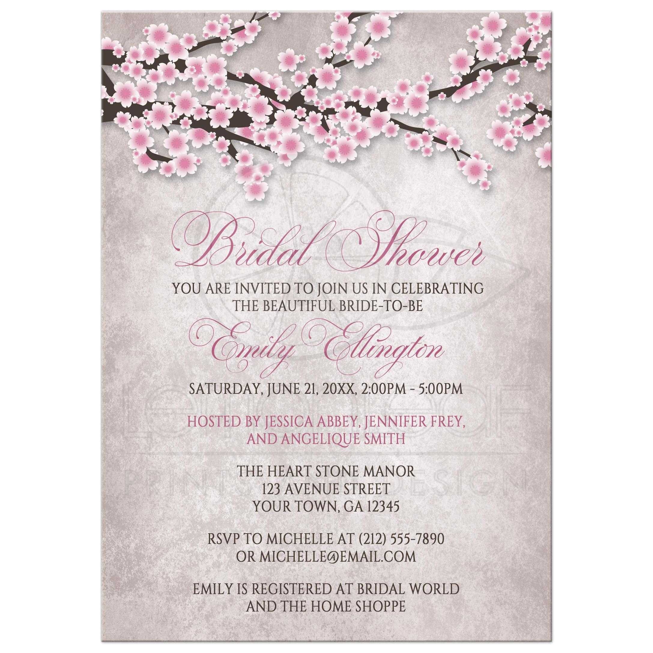 cherry blossom bridal shower invitations sample: