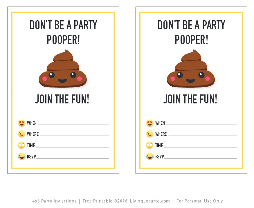 party pooper invitation with poop emoji from free printable poop emoji birthday invitations