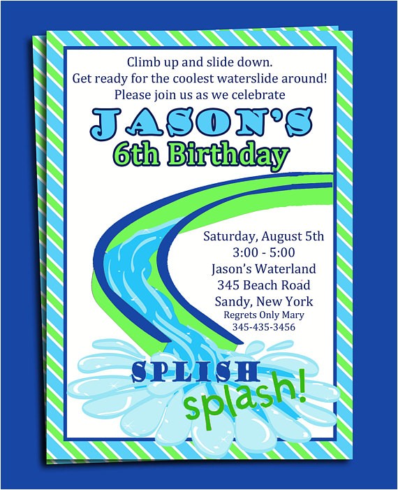 free water slide birthday party invitations