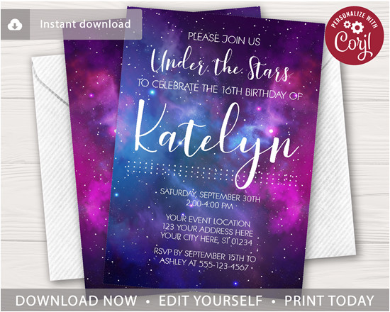 tween birthday galaxy invitation digital space invitation from Galaxy Birthday Invitation Template
