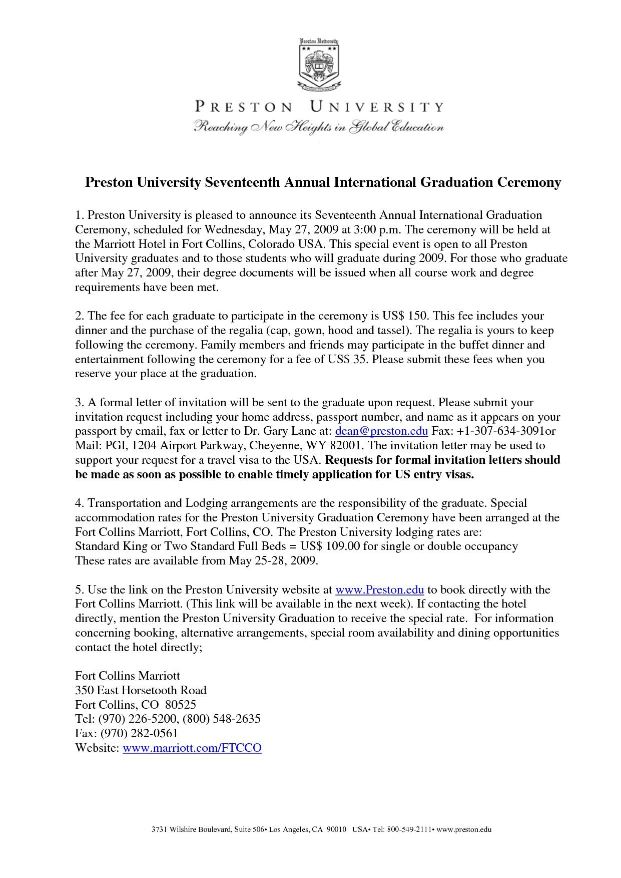 sample letter of invitation for graduation ceremony from graduation invitation letter for visa