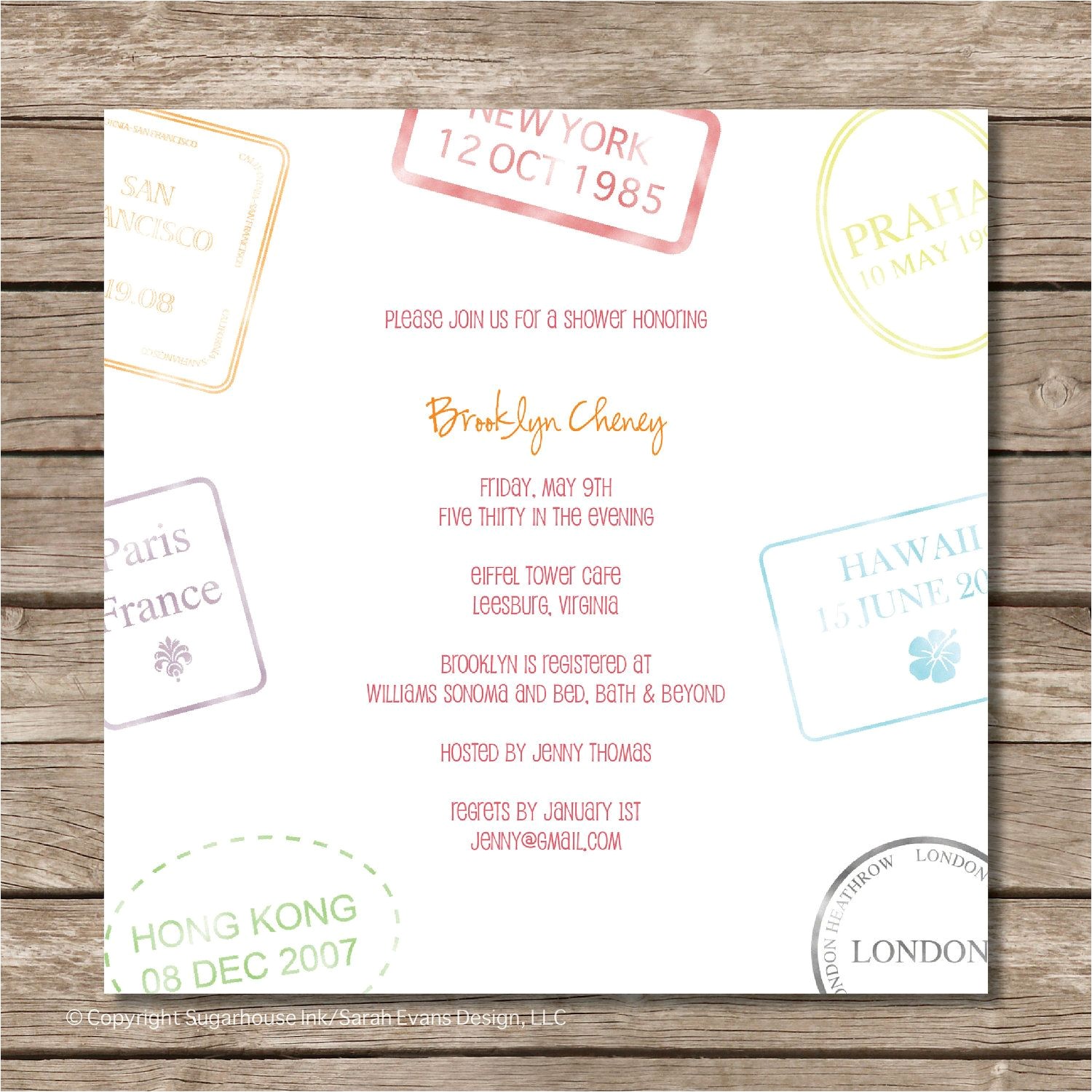 honeymoon themed bridal shower invitations sample:
