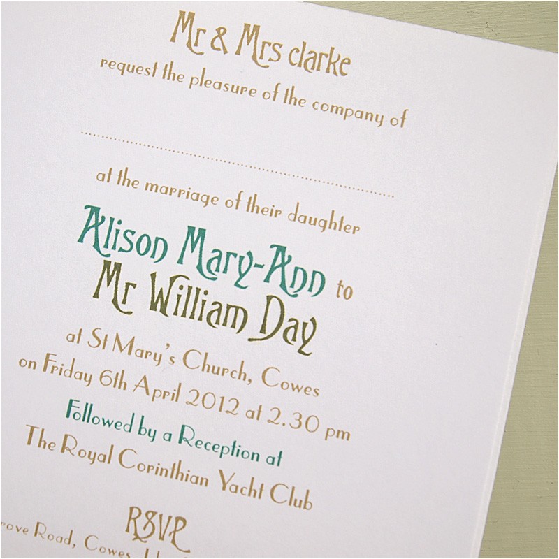 Barring a themed wedding, chances are there is something unique not quite it, perhaps your wedding color. You can bring the colors of your wedding party into your invitations, although you reach not want to just send out white and teal green invitations. choose an interesting meant or textured paper in teal green and off set it taking into account a sheer lid in cream. The best situation to attain considering using wedding colors for your invitations is to step out of the bin and use your imagination.