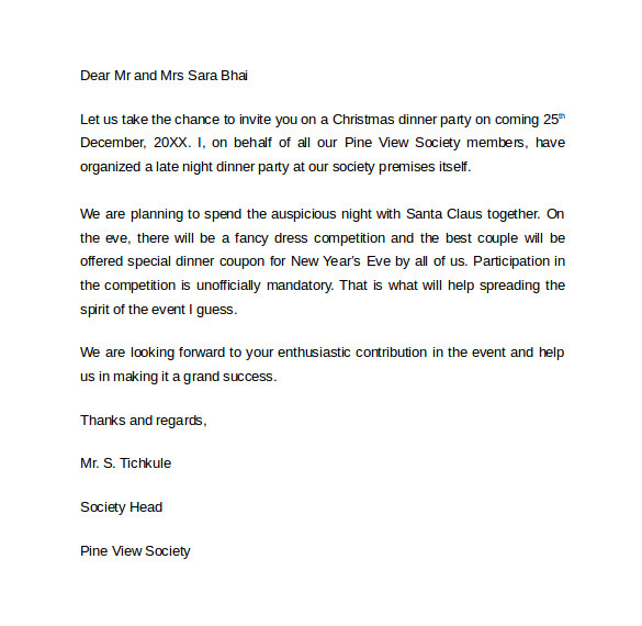 Invitation Letter Dinner Party Example Sample Invitation Letter 19 Download Free Documents In