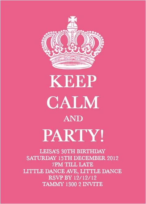 keep calm and party on invitations sample: