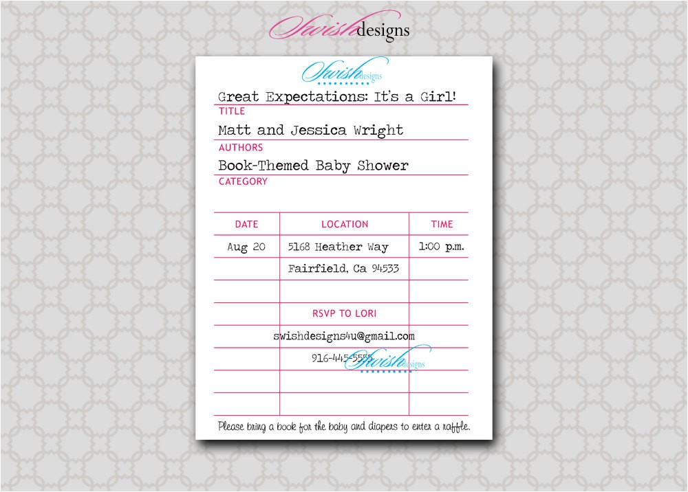 Girls Library Baby Shower Invitation Vintage Library Card from library card baby shower invitation template