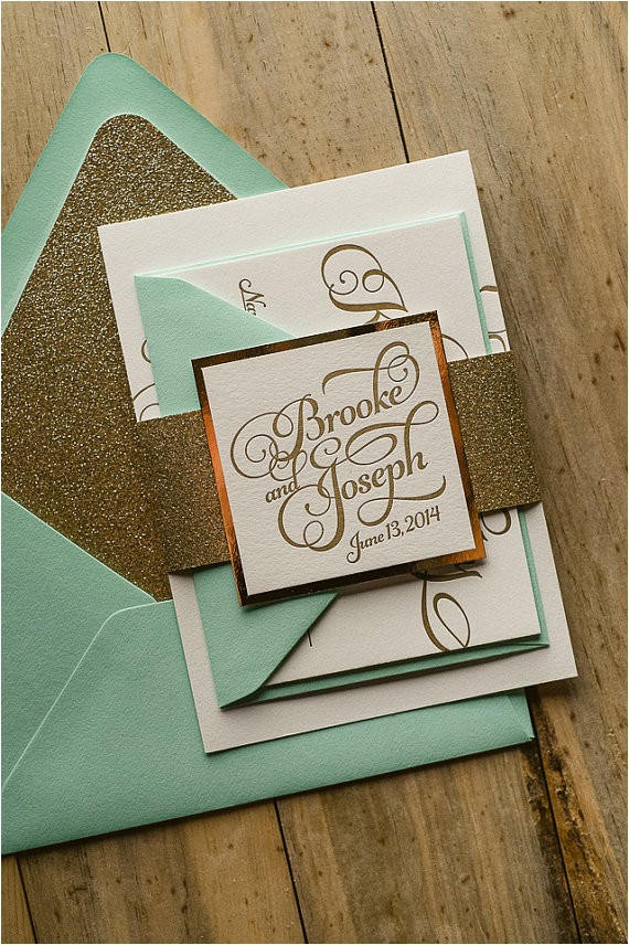 mint and gold glitter pocket wedding invitations with glitter from mint and gold wedding invites