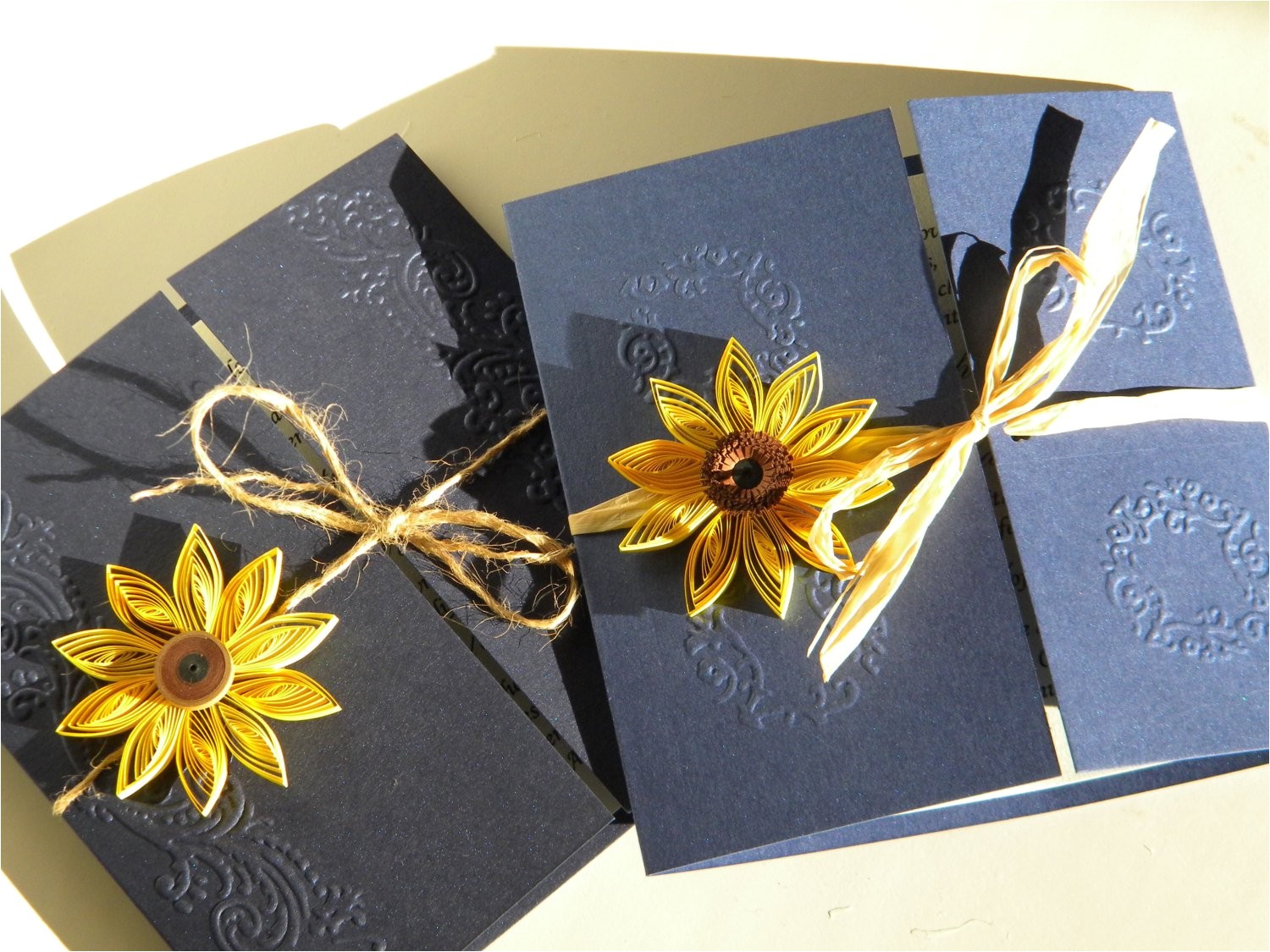 sunflower handmade wedding invitation country invitation from navy blue and sunflower wedding invitations