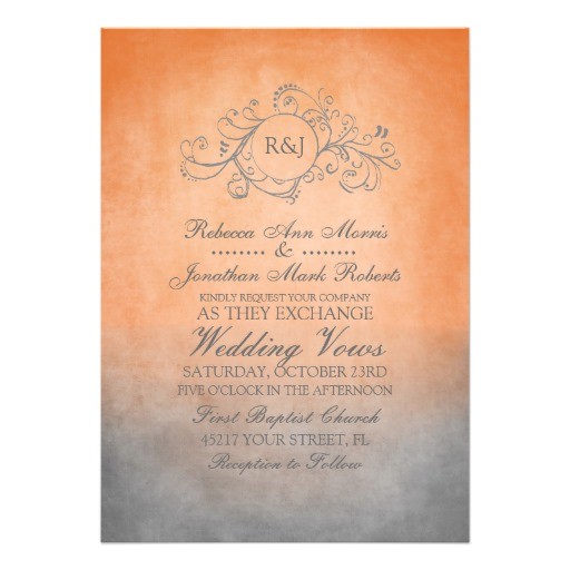 orange and gray wedding invitations sample: