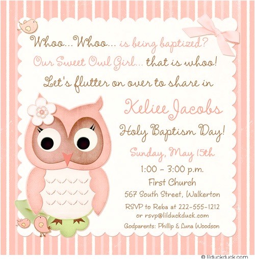 owl baptism invitations sample: