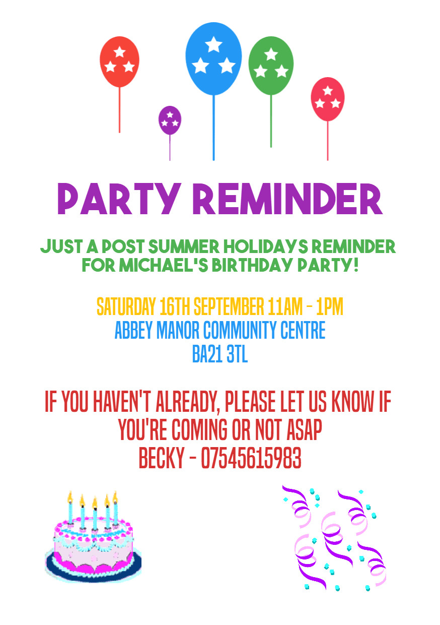 Another Party Invitation Reminder Template sample: