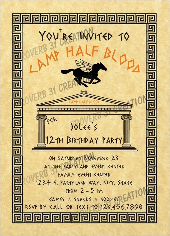 demi god percy jackson inspired greek god half blood from percy jackson birthday party invitations
