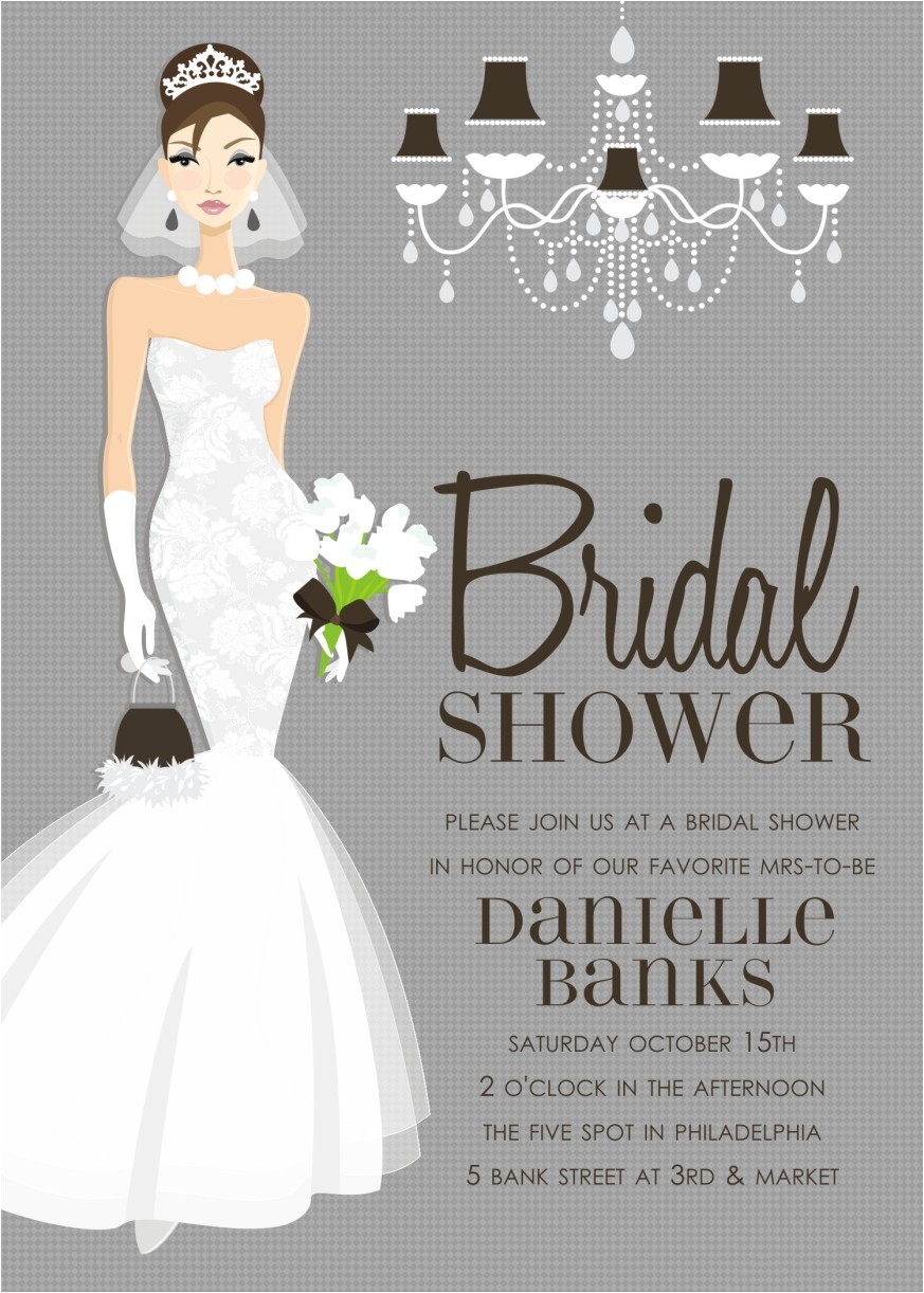 Wedding dress Chandelier Bridal shower Invitation from pre printed bridal shower invitations