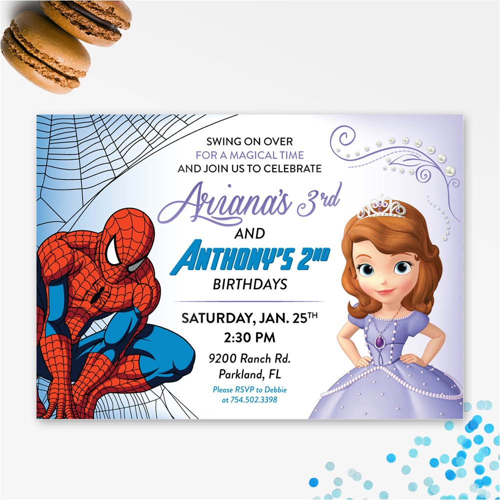 superhero princess birthday invitation invite sibling from princess and superhero party invitation template