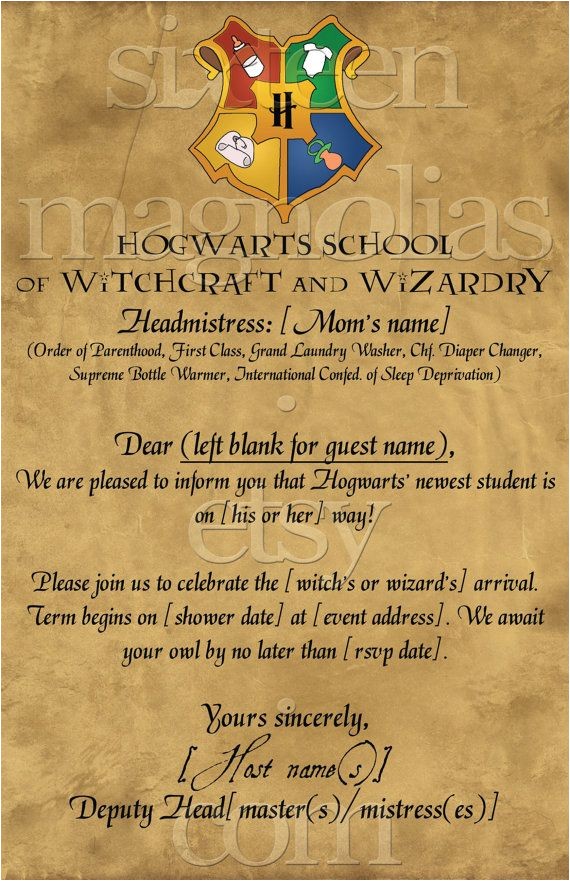 Harry Potter Hogwarts Letter Baby Shower by sixteenmagnolias from printable harry potter baby shower invitations
