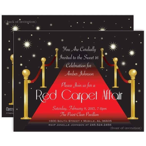 Red Carpet Hollywood Sweet 16 Birthday Invite from red carpet bridal shower invitations