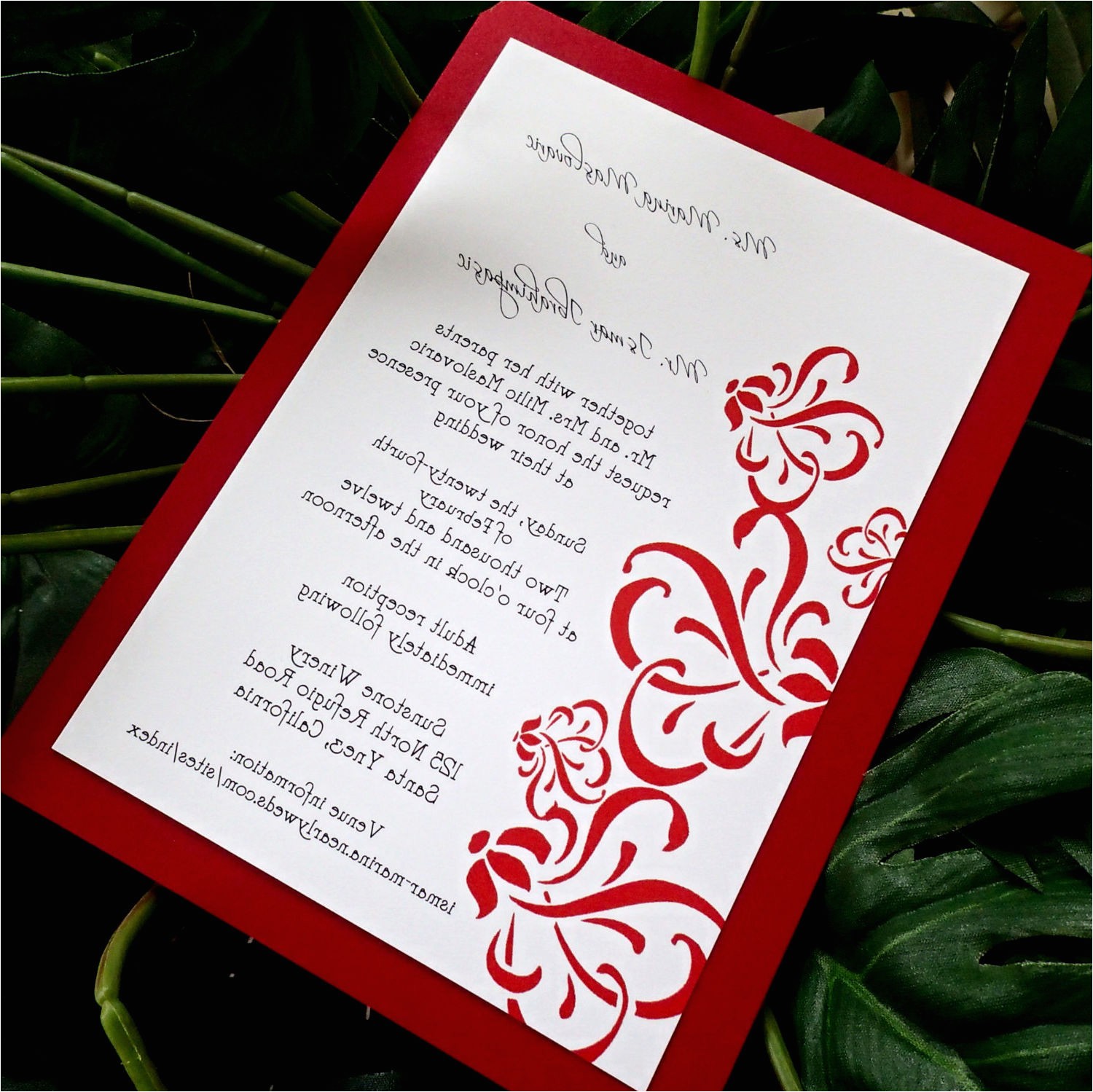 red silver and black wedding invitation flat card with from red white and silver wedding invitations