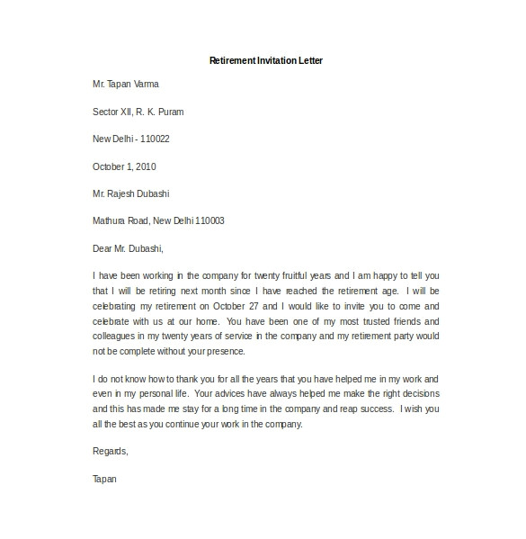 retirement letter sample download free business letter from Retirement Party Invitation Letter Template