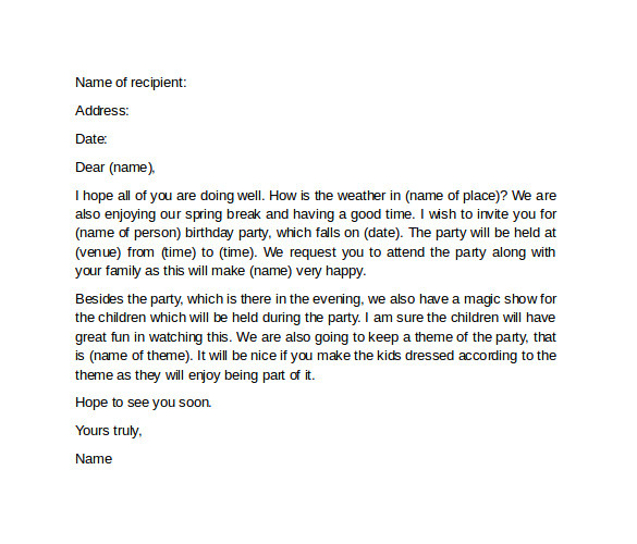 birthday invitation letter free sample letters from Sample Party Invitation Letter Template