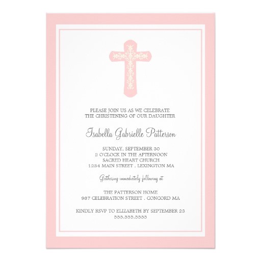 Simple Holy Cross Pink Girl Christening Invitation from simple girl baptism invitations