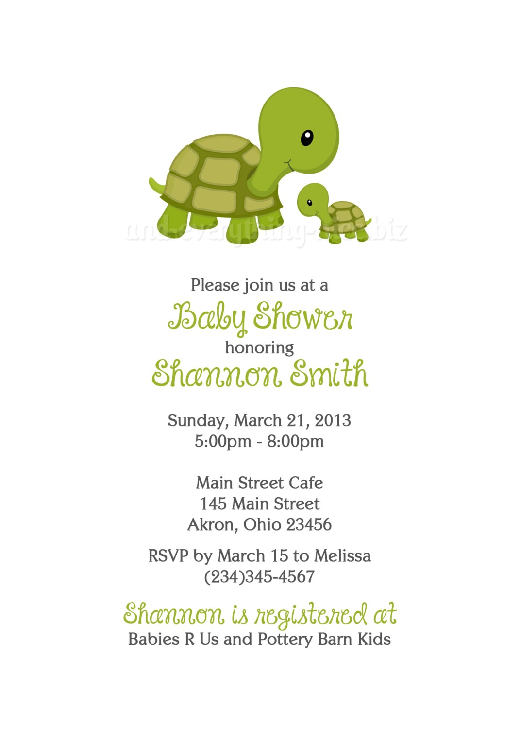 Printable Turtle Baby Shower Invitation from turtle invitations for baby shower