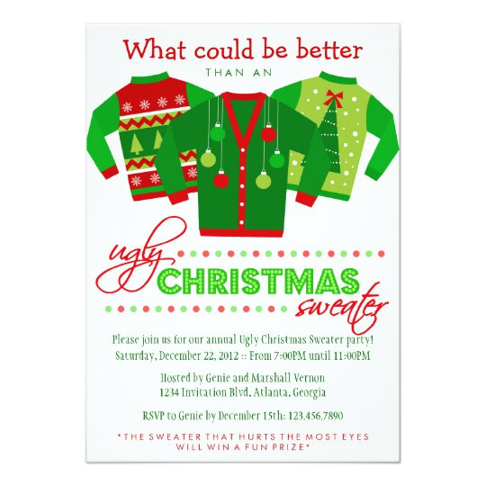 festive ugly sweater christmas party invitations zazzle com from Ugly Sweater Holiday Party Invitation Template