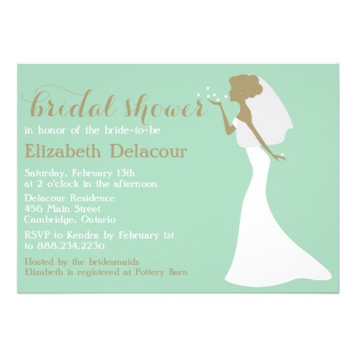 You want to create certain that your bridal shower invitations are put in the mail considering profusion of epoch for your guests to respond and for you to acquire a certain insert upon your guest list. A fine era frame for mailing is 2-3 months prior to the bridal shower.