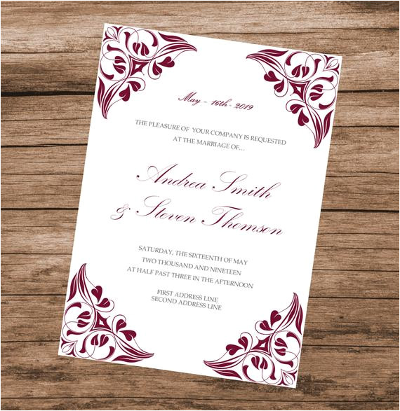 burgundy wedding invitation template marsala wedding from Wedding Invitation Template Burgundy