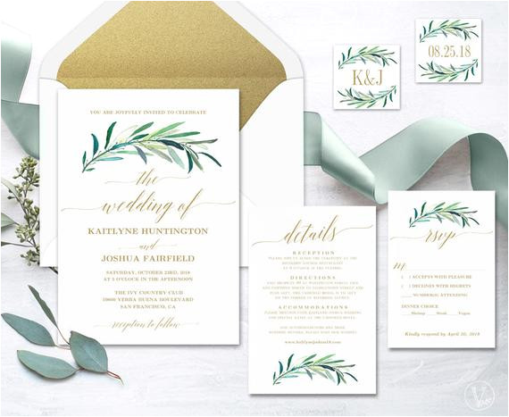 greenery wedding invitation set rustic watercolor wedding from Wedding Invitation Template Greenery