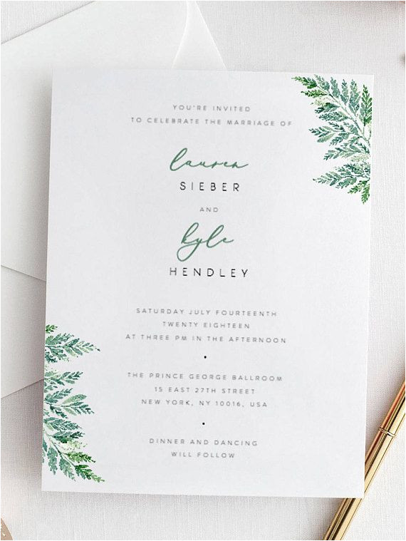 wedding invitation template with green leaves and fur from Wedding Invitation Template Leaf