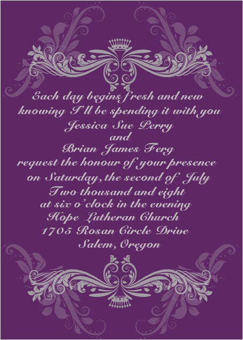 There are many choices taking into account it comes to wedding invitations that are pre-made. while you may not want to choose a pre-made pack of wedding invitations, you can mixture and come to an understanding from a variety of sets to make a wedding invitation set that is completely unique to you and your spouse to be. in reality love that Vera Wang paper but dig the Anna Griffin envelopes? Well, order them both and put them together. As long as you both next it – there’s nothing wrong following mixing occurring a few interchange sets to make your own unique wedding invitations. Remember, this hours of daylight is all roughly the two of you and your choices and individuality should field through the entire event, starting past the invitations.