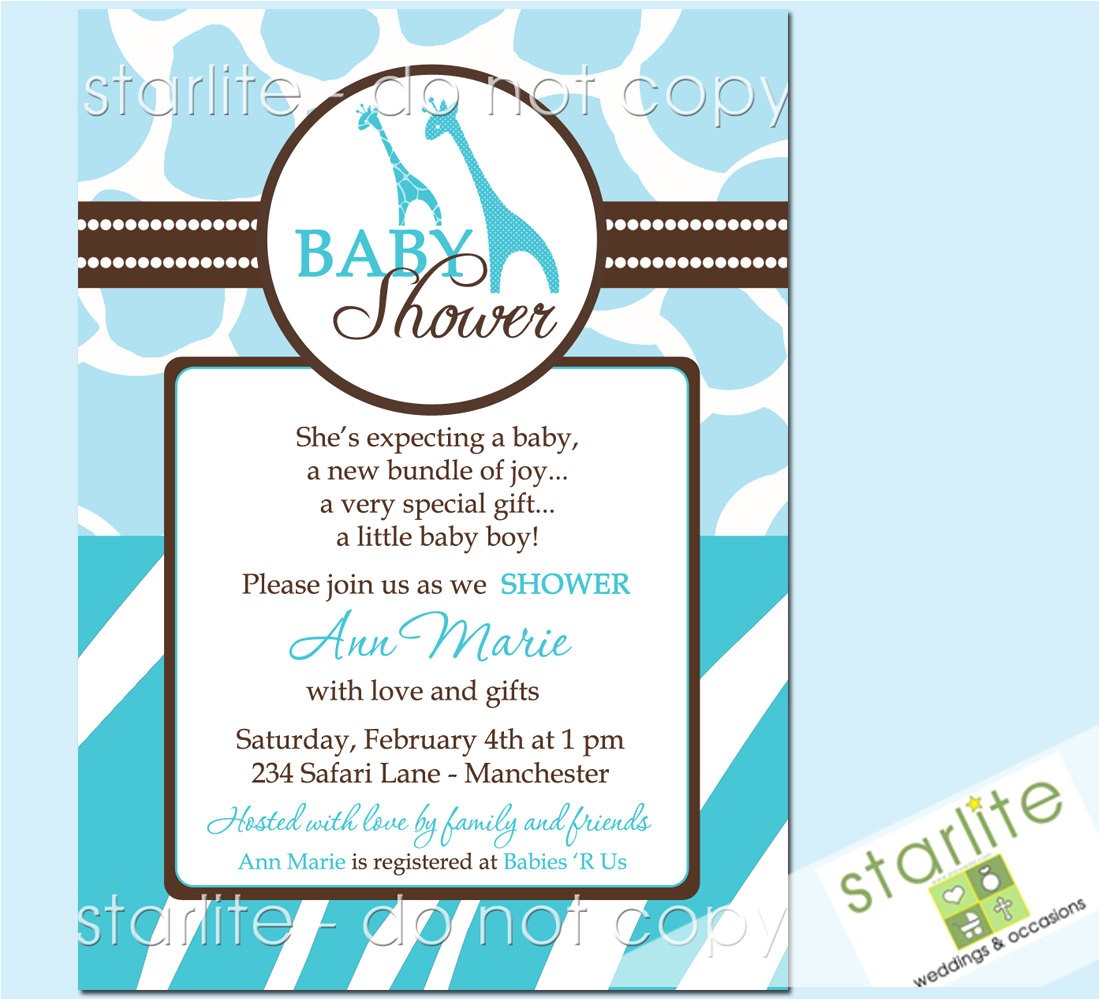 Modern Wild Safari Boy Baby Shower Invitation Giraffe from wild safari blue baby shower invitations