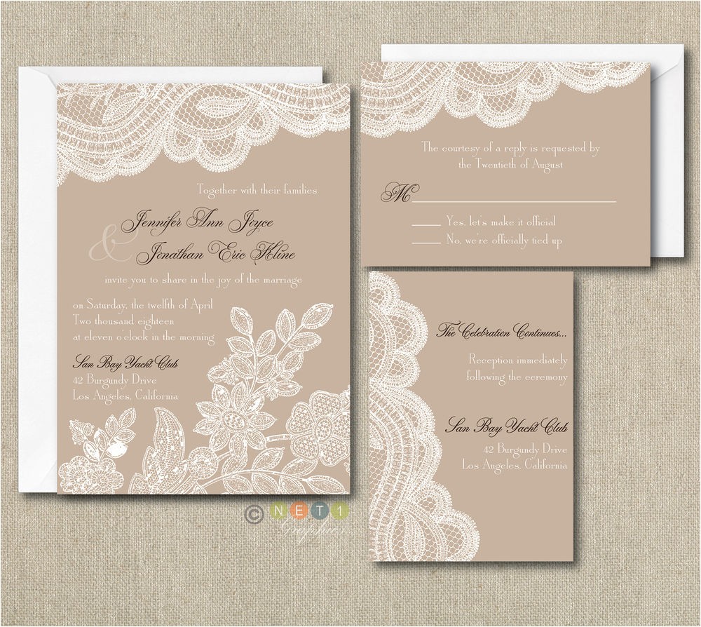 custom listing 100 rustic lace wedding invitation from 100 personalised wedding invitations