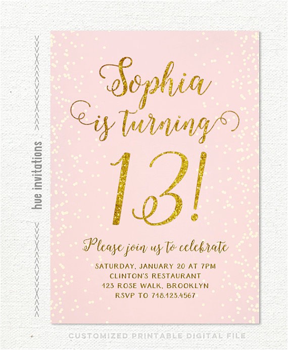 13th birthday invitation for girl pink gold teen birthday from 13th birthday invitations for girls