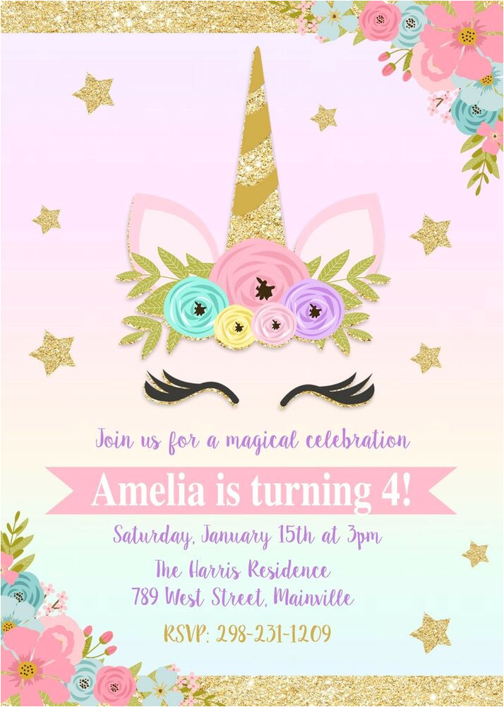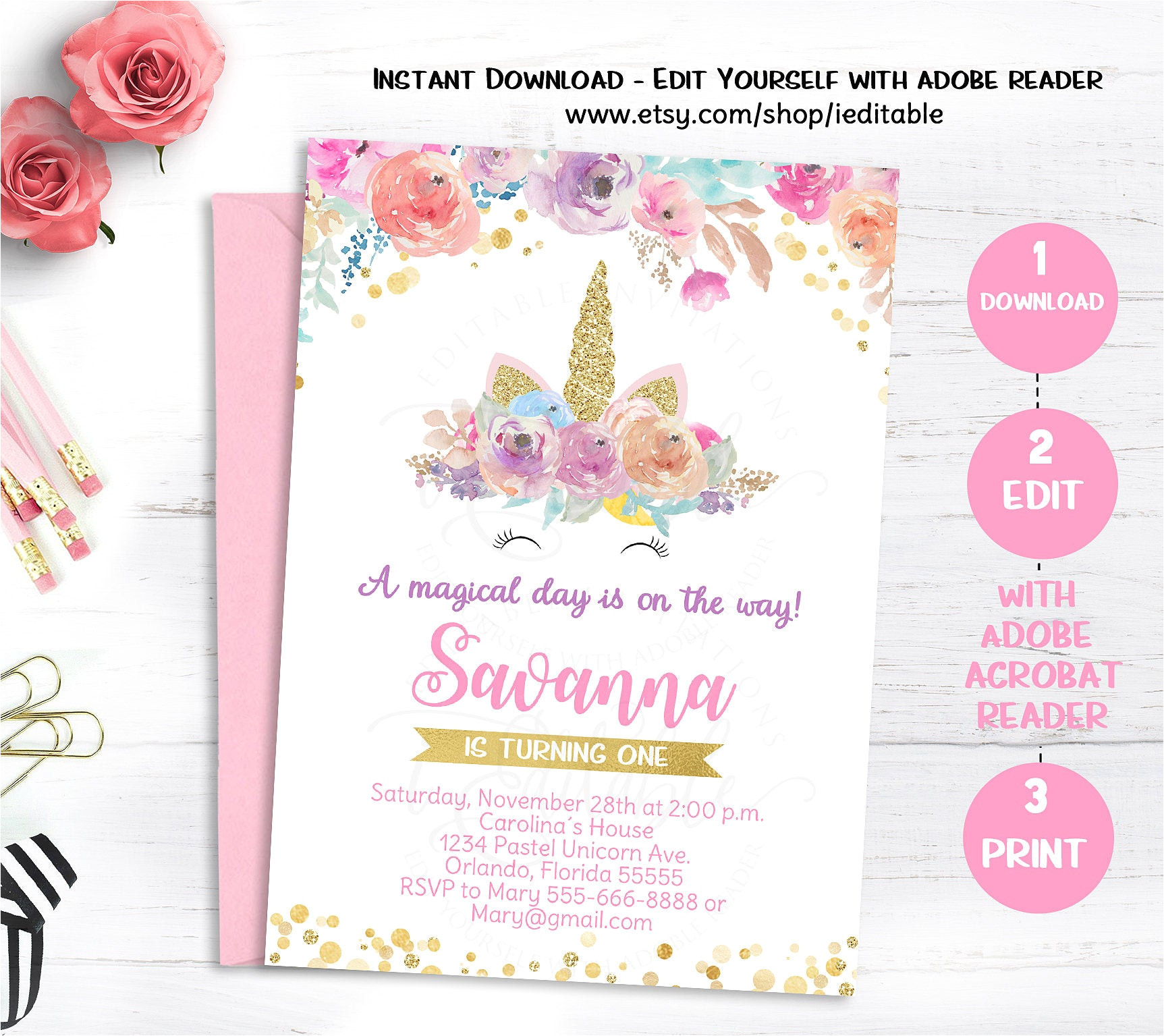 unicorn invitation unicorn birthday invitation floral from 1St Birthday Invitation Template Unicorn
