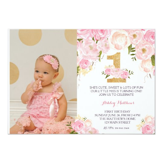 1st birthday first beautiful floral invitation card zazzle from 1St Year Birthday Invitation Card Template