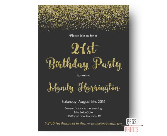 21st Birthday Party Invitations Black & Gold 5" X 7 from 21 birthday invitations free