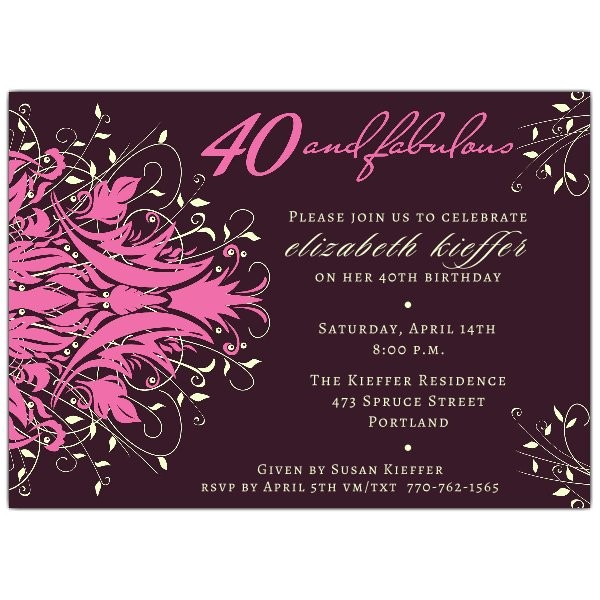 Andromeda Fabulous Pink 40th Birthday Invitations from 40th birthday invitations with photo