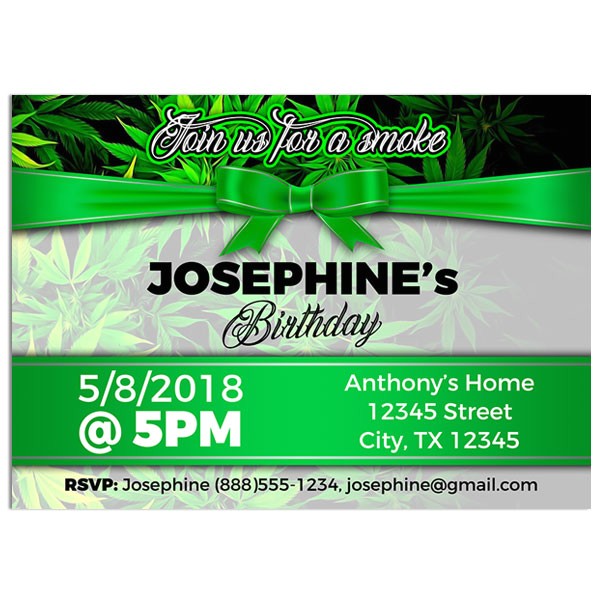 Marijuana Green Bow Birthday Party Invitations – PAPER BLAST from 420 party invitations