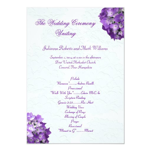purple hydrangeas 5×7 wedding program template 5×7 paper from 5 X 7 Wedding Invitation Template