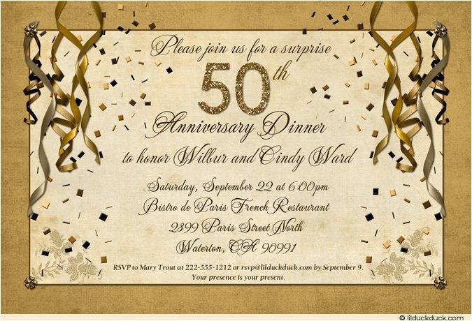 festive 50th anniversary party invitation gold streamer from 50th anniversary surprise party invitations