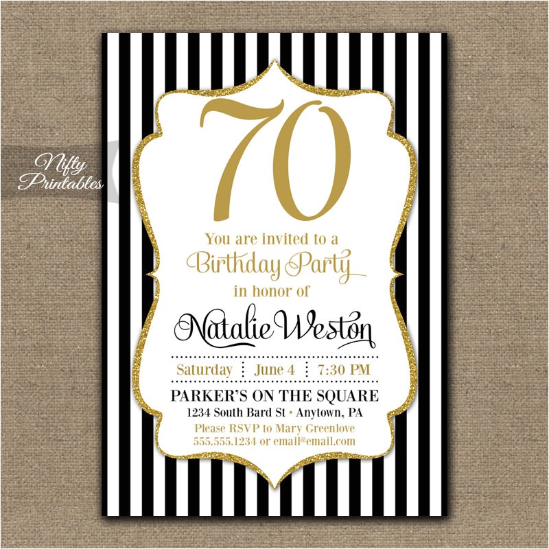 70th Birthday Invitations Black & Gold Glitter 70 Seventy from 70 year old birthday invitations
