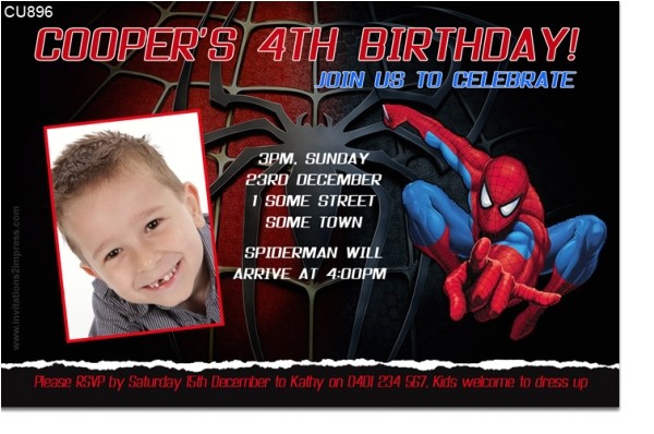 CU896 Spiderman Birthday Invitation Boys Themed from 7th birthday invitation spiderman theme